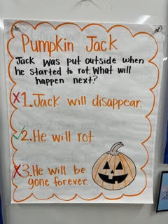 For writing, we moved into our official writing curriculum. The students are starting to write personal narratives. We started with a whole class book on pumpkin day.