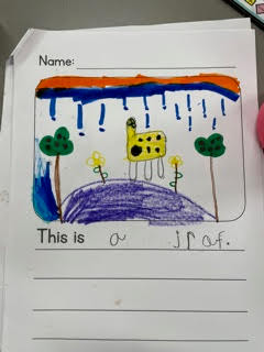 For writing, we are working really hard on making WOW! Pictures. Wow pictures are done in pencil first, then we go over our pencil marks with black marker, and then we use crayon and marker to color in. Wow pictures have lots of detail, very little white space, and take a lot of time. Take a look at some wow pictures.